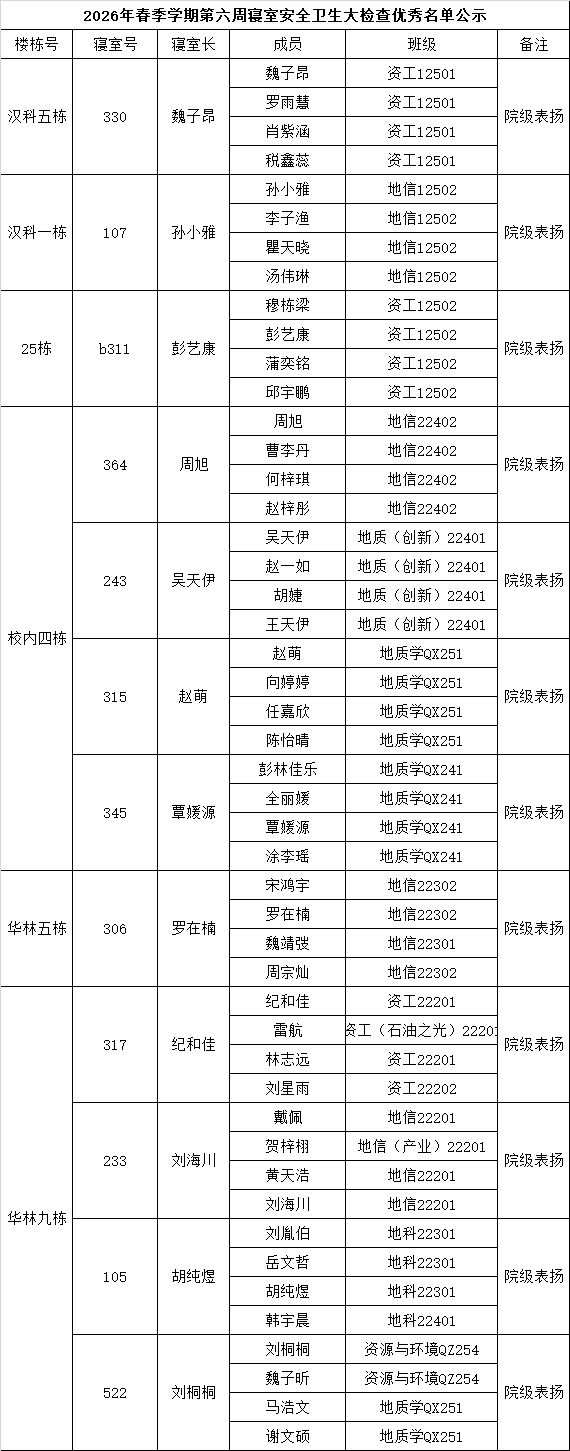 为加强学生宿舍安全管理和文明建设工作,确保学生宿舍安全、整洁、文明、有序,根据学校要求,我院于4月9日开展了第6周学生宿舍自查工作,现将检查情况通报如下