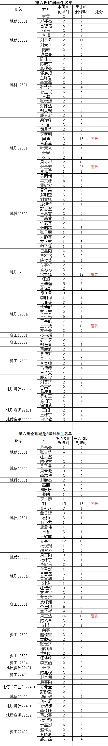 注:若学生某周存在旷课记录,但次周所有课程均正常到课(无迟到、旷课),则可从该生累计旷课课时中减免 2学时。