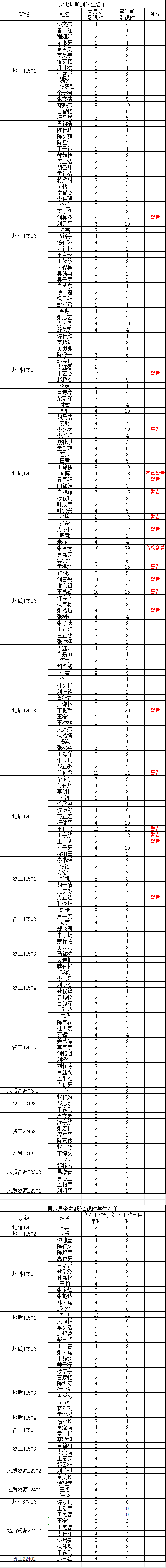 注:若学生某周存在旷课记录,但次周所有课程均正常到课(无迟到、旷课),则可从该生累计旷课课时中减免 2学时。
