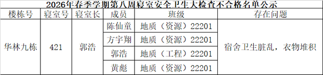 为加强学生宿舍安全管理和文明建设工作,确保学生宿舍安全、整洁、文明、有序,根据学校要求,我院于4月23日开展了第8周学生宿舍自查工作,现将检查情况通报如下
