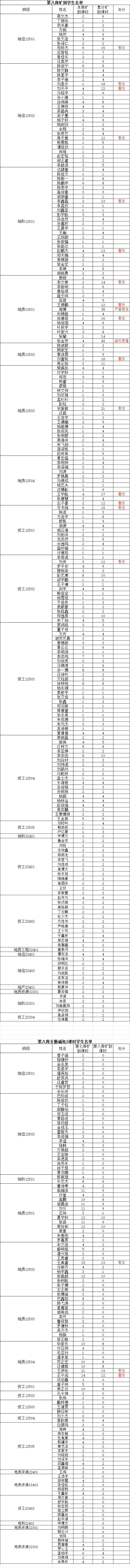 为落实学院关于加强学风建设的相关要求,进一步规范课堂秩序,营造良好的学习氛围,我院持续开展常态化课堂考勤工作。现将第八周考勤情况通报如下: