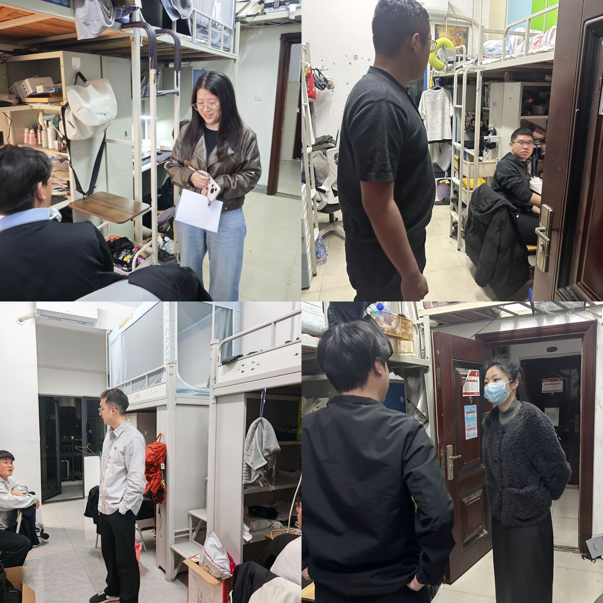 同时,学院党委书记牵头,组织全体辅导员、班主任深入每一间学生宿舍开展节前走访排查工作。重点检查宿舍安全用电、消防设施配备及宿舍卫生状况,细致排查违规电器使用、私拉乱接等各类安全隐患,做到隐患排查到位、整改落实到位。走访中,工作人员与学生面对面谈心交流,详细掌握学生学习生活状况和假期出行安排,反复叮嘱学生离校前切断电源、关好门窗,做好宿舍防火防盗工作。针对学业就业压力、情感心理困扰、家庭经济困难等重点学生群体开展一对一谈心谈话,扎实做好危机预警排查和暖心人文关怀。